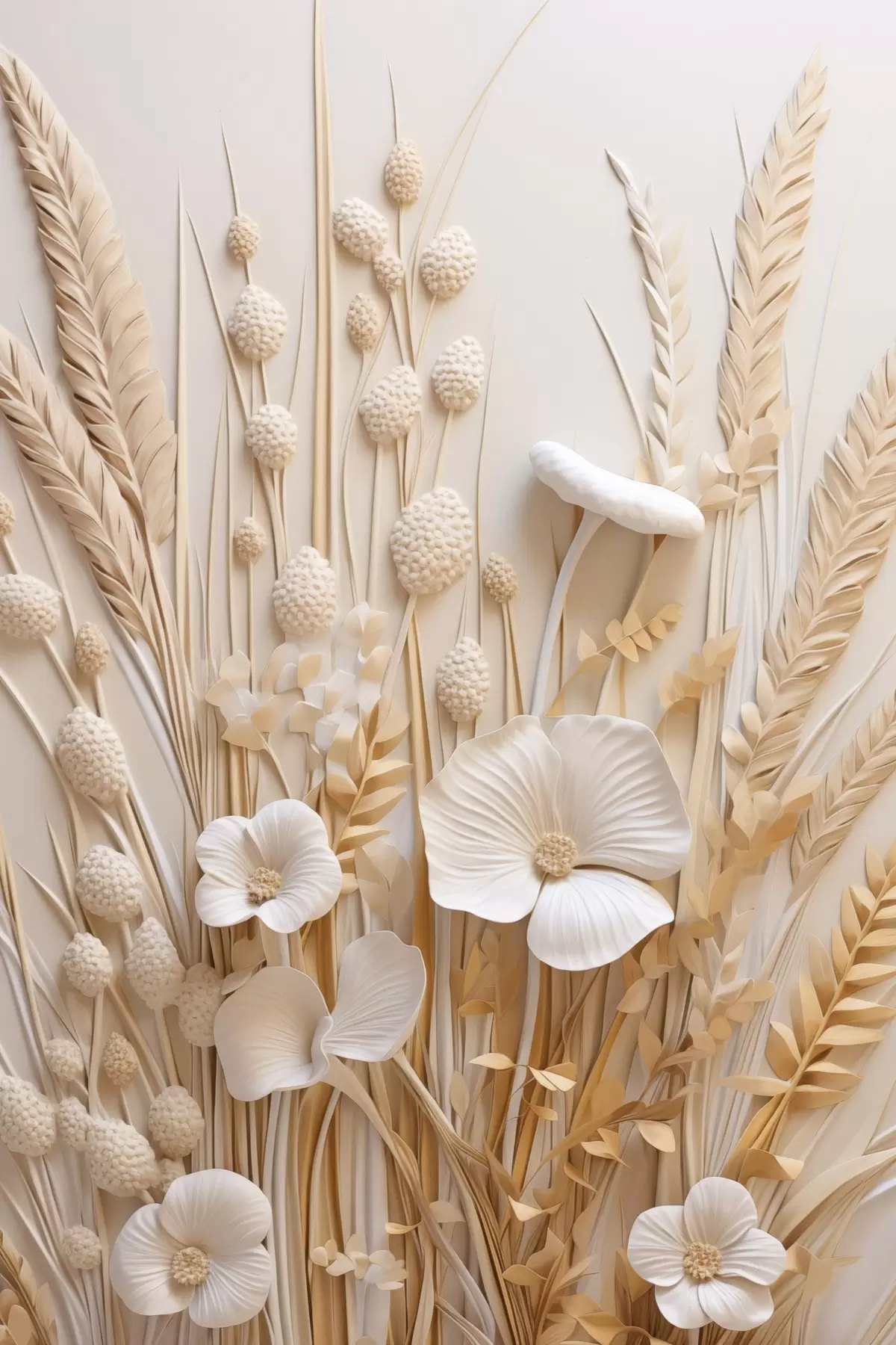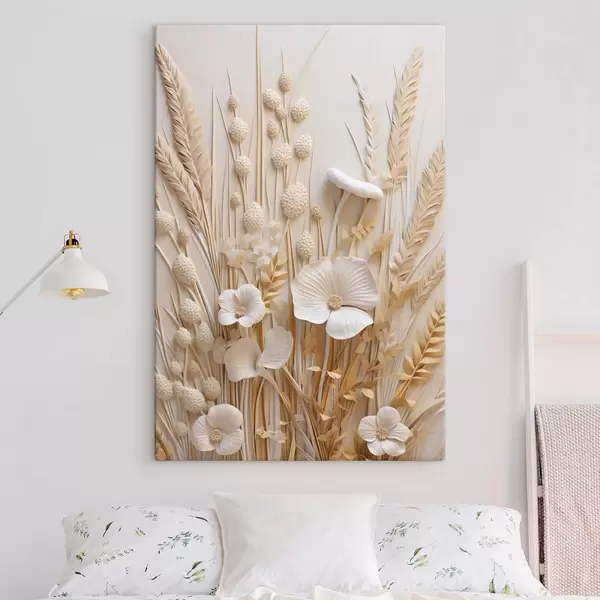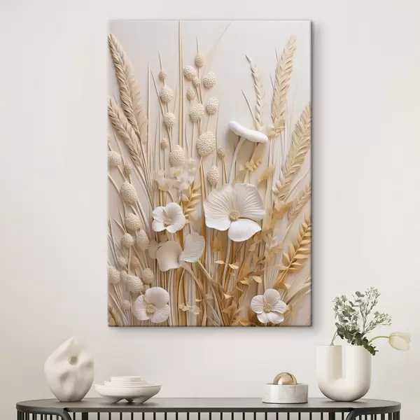 Vászonkép Krémes mályvacsokor szárított búzaszárral Nr s48748