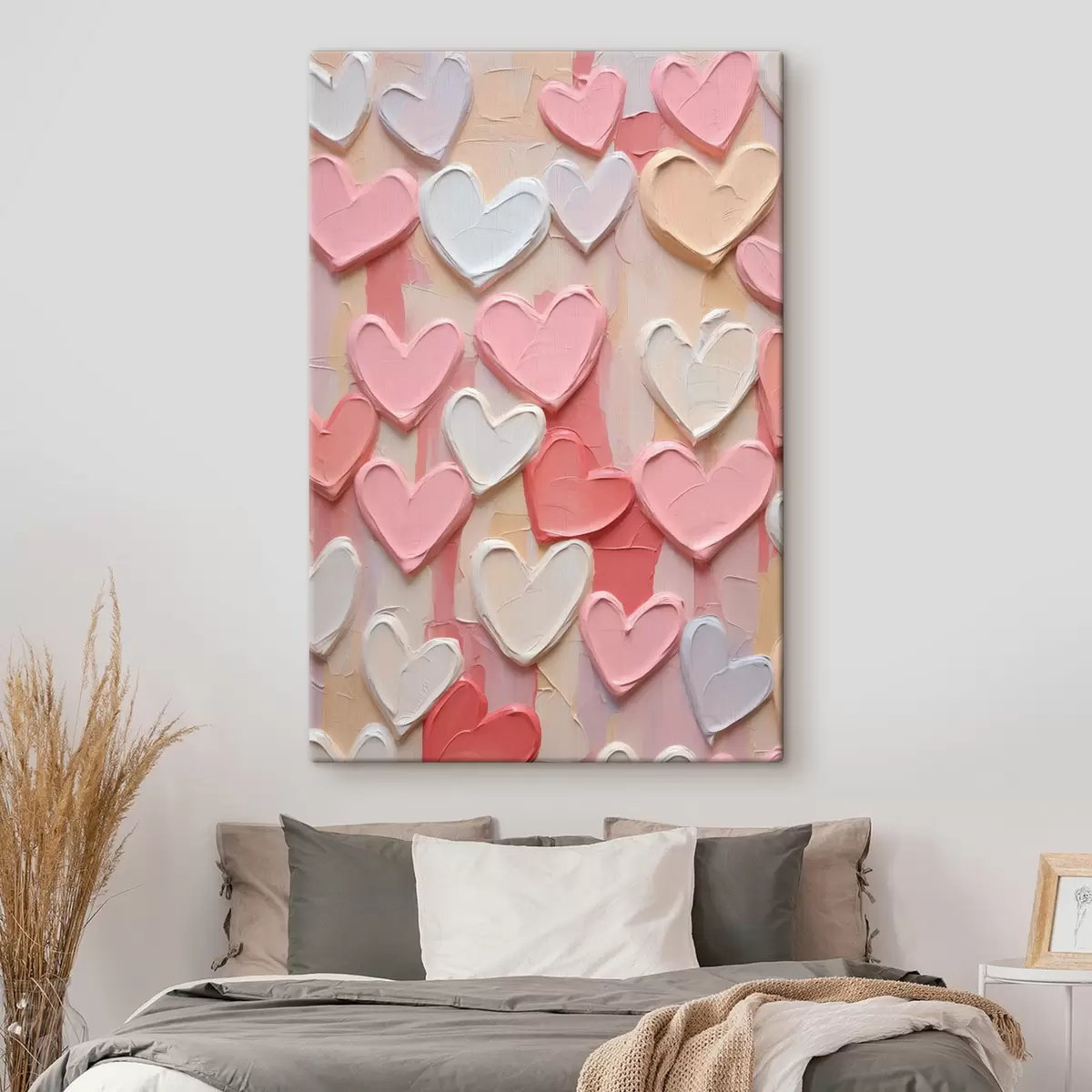 Vászonkép Szív alakú motívumok különböző barack- és rózsaszín árnyalatokban, texturált, festett stílusban Nr s48751
