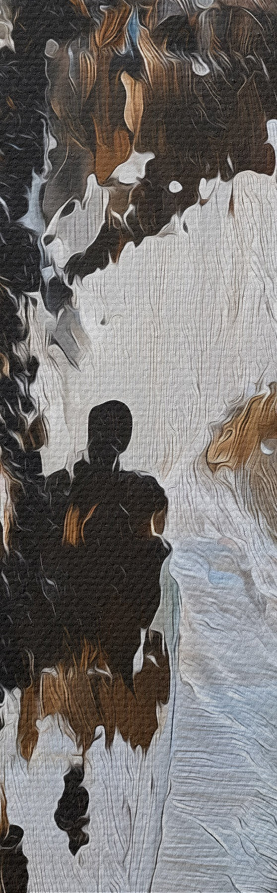Ahhoz, hogy a vásznat a feszítőrúdra feszítsük anélkül, hogy a kép megsérülne, tükrözött képet használunk.