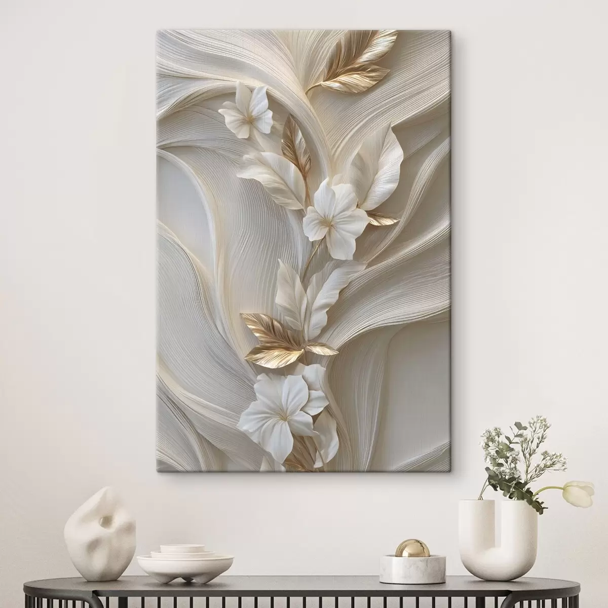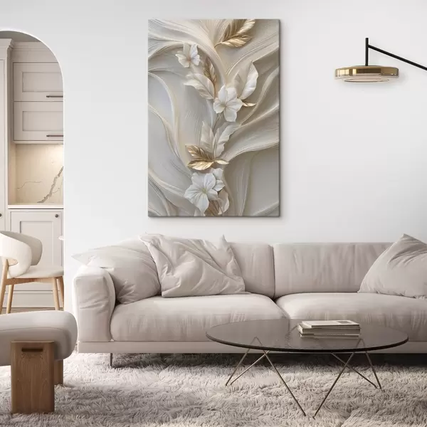 Vászonkép háromdimenziós levelek, textúrák és virágok gyönyörű utánzata Nr s48787