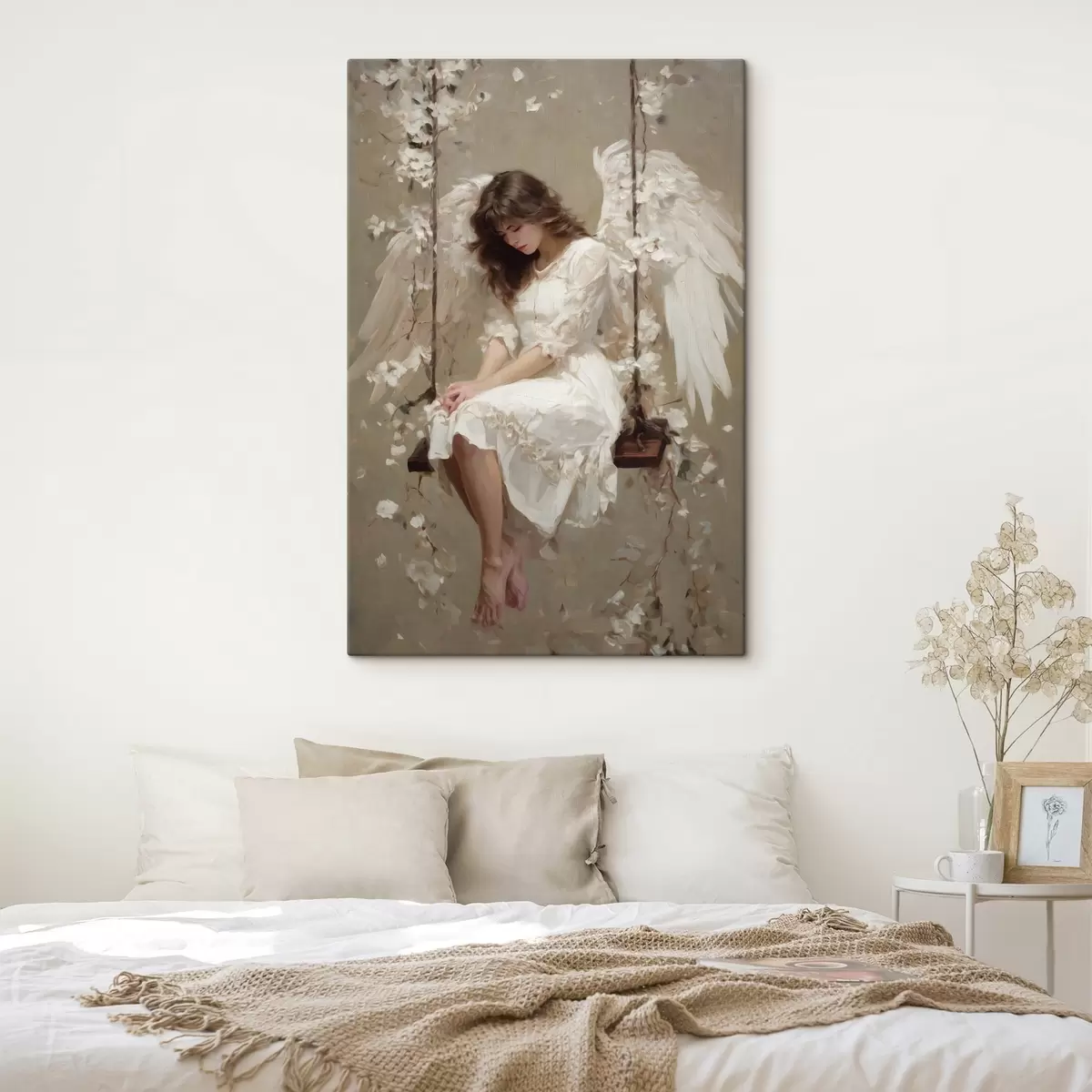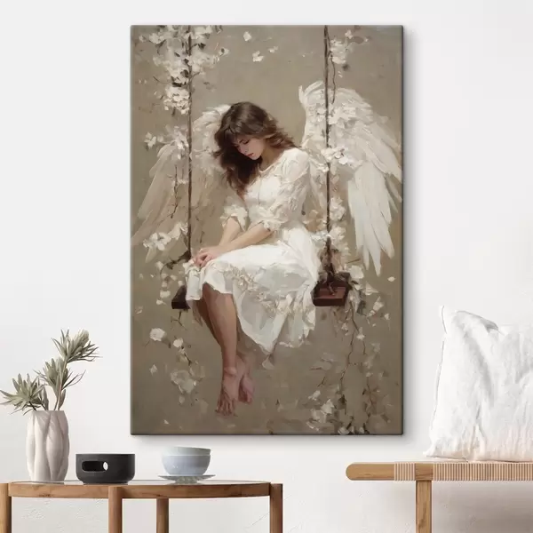 Vászonkép egy angyalkal, aki hintázik, olajfestmény stílusban megfestve Nr s48789