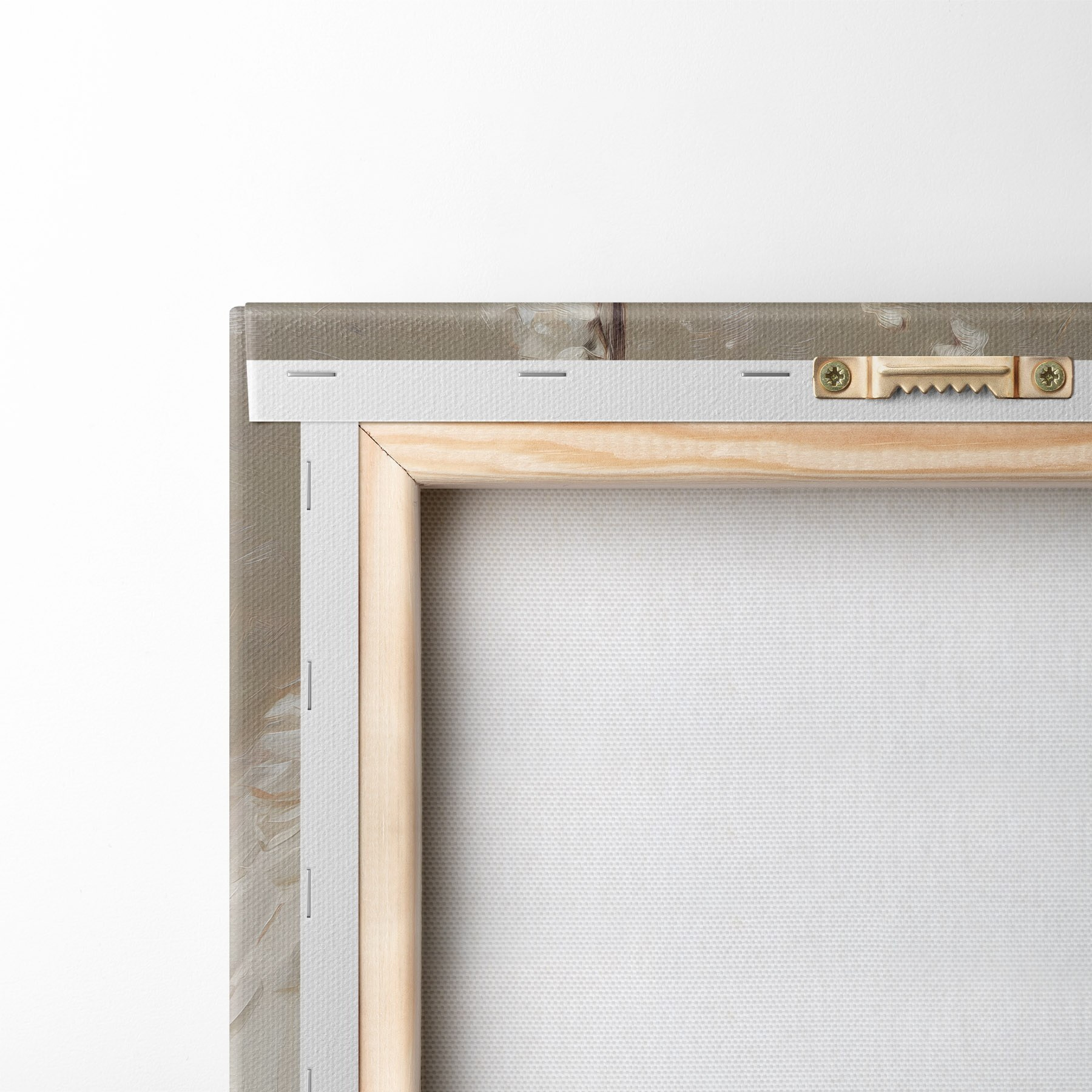 Ahhoz, hogy a vásznat a feszítőrúdra feszítsük anélkül, hogy a kép megsérülne, tükrözött képet használunk.