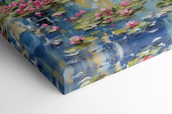 Vászonkép Impresszionista festmény: híd a tavacska felett, liliomokkal és virágokkal Nr s48807
