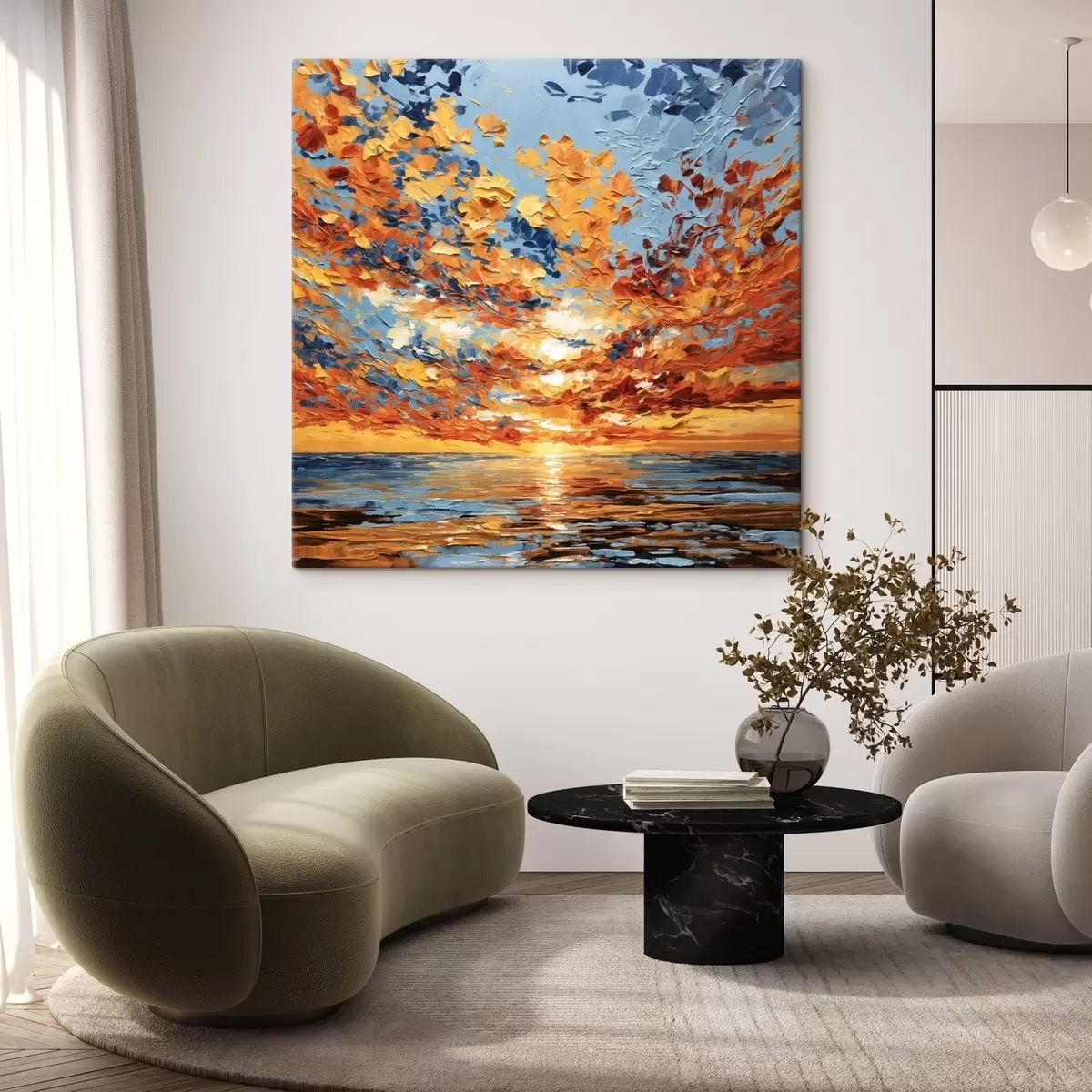 Vászonkép Impasto stílusú, látványos naplemente a tenger felett Nr s48810