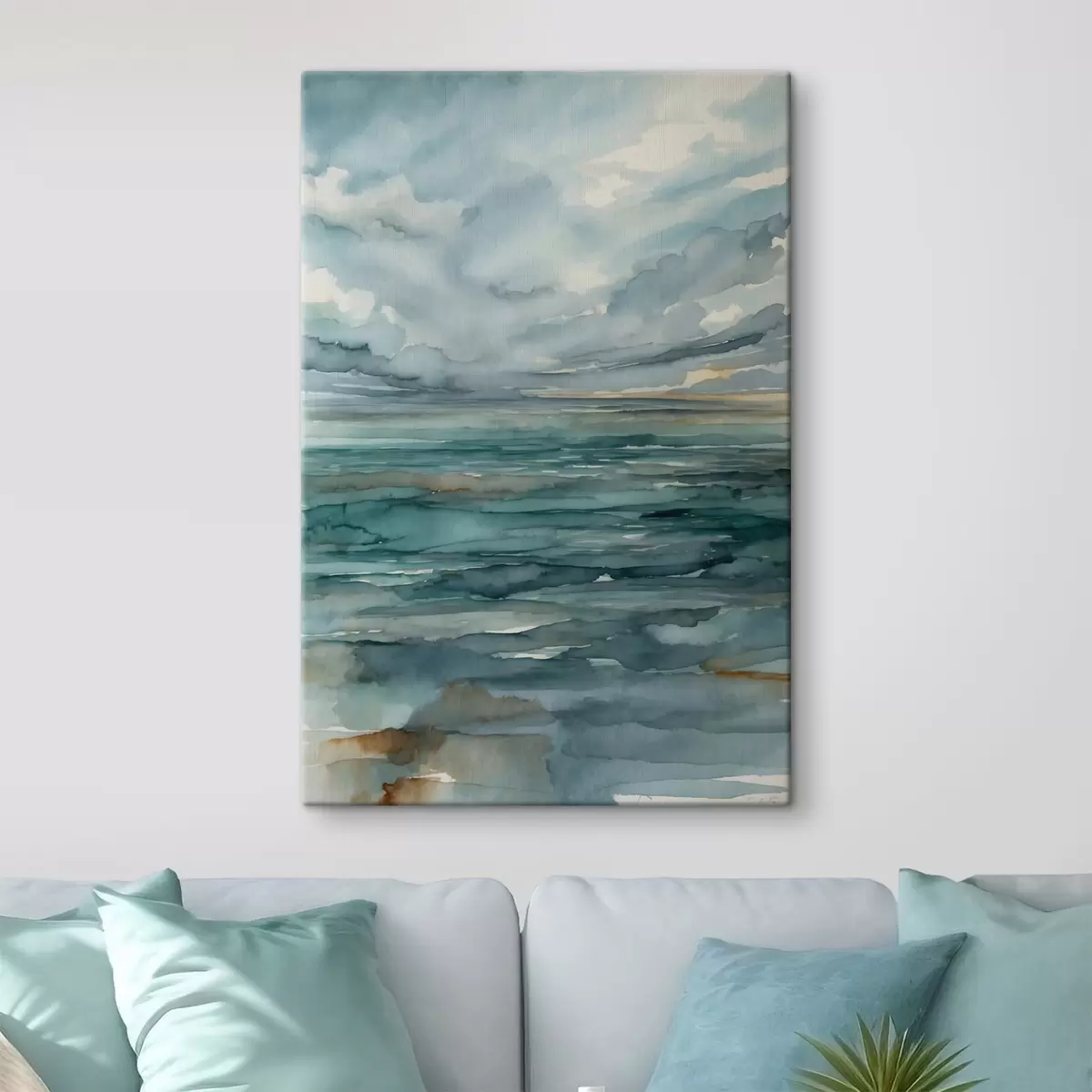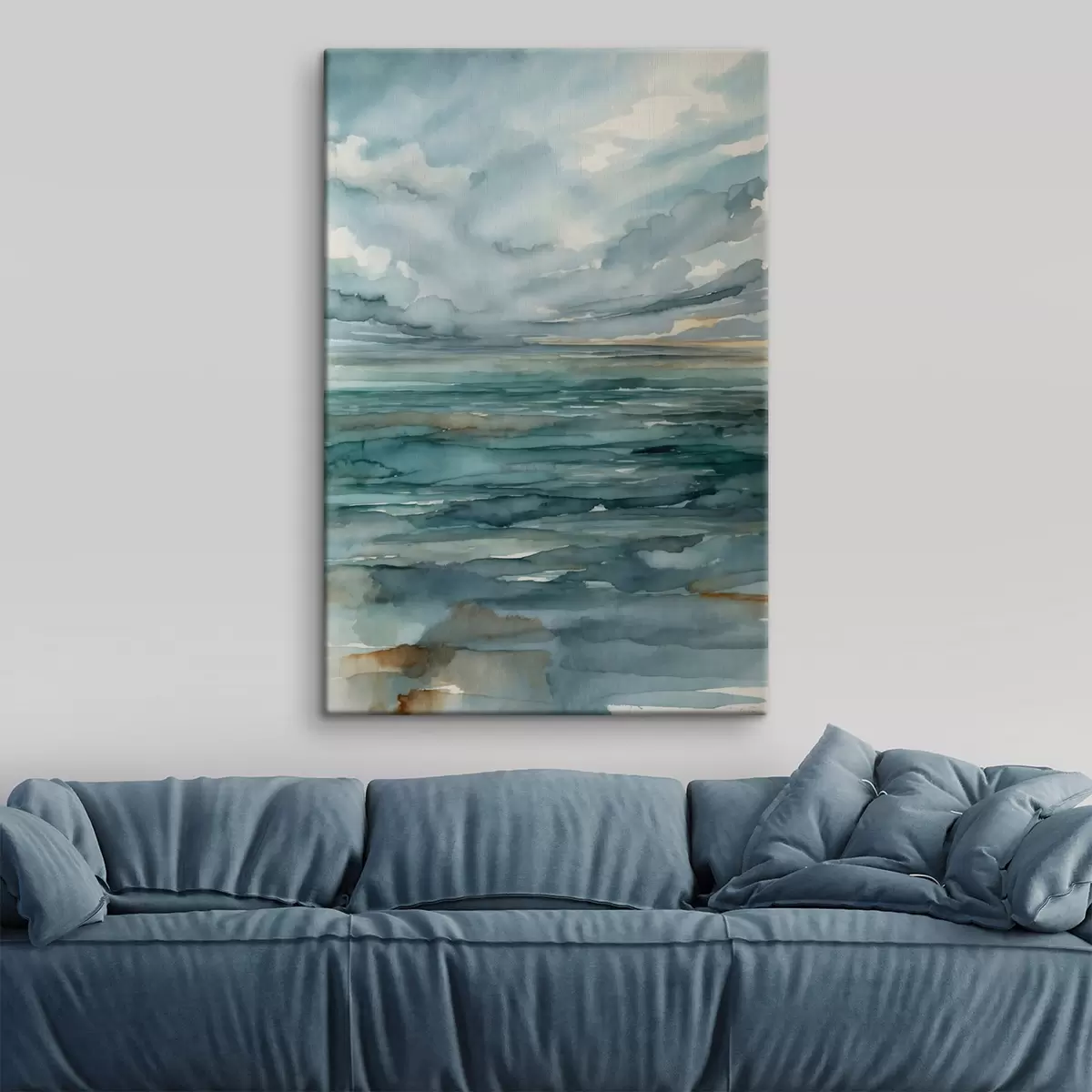 Vászonkép Akvarell: nyugodt tenger felhős ég alatt Nr s48824