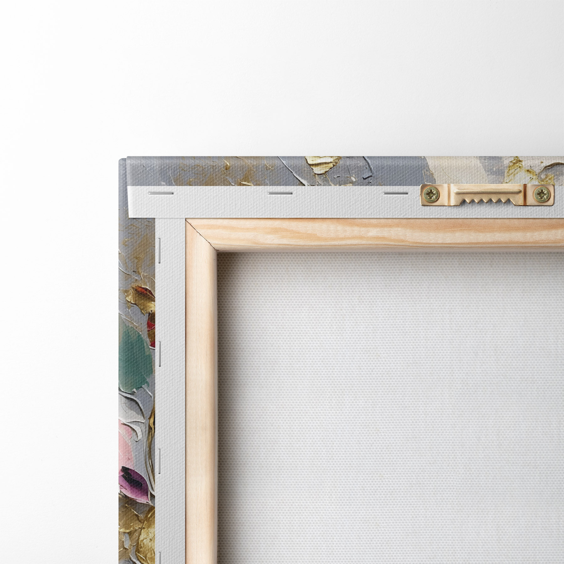 Ahhoz, hogy a vásznat a feszítőrúdra feszítsük anélkül, hogy a kép megsérülne, tükrözött képet használunk.