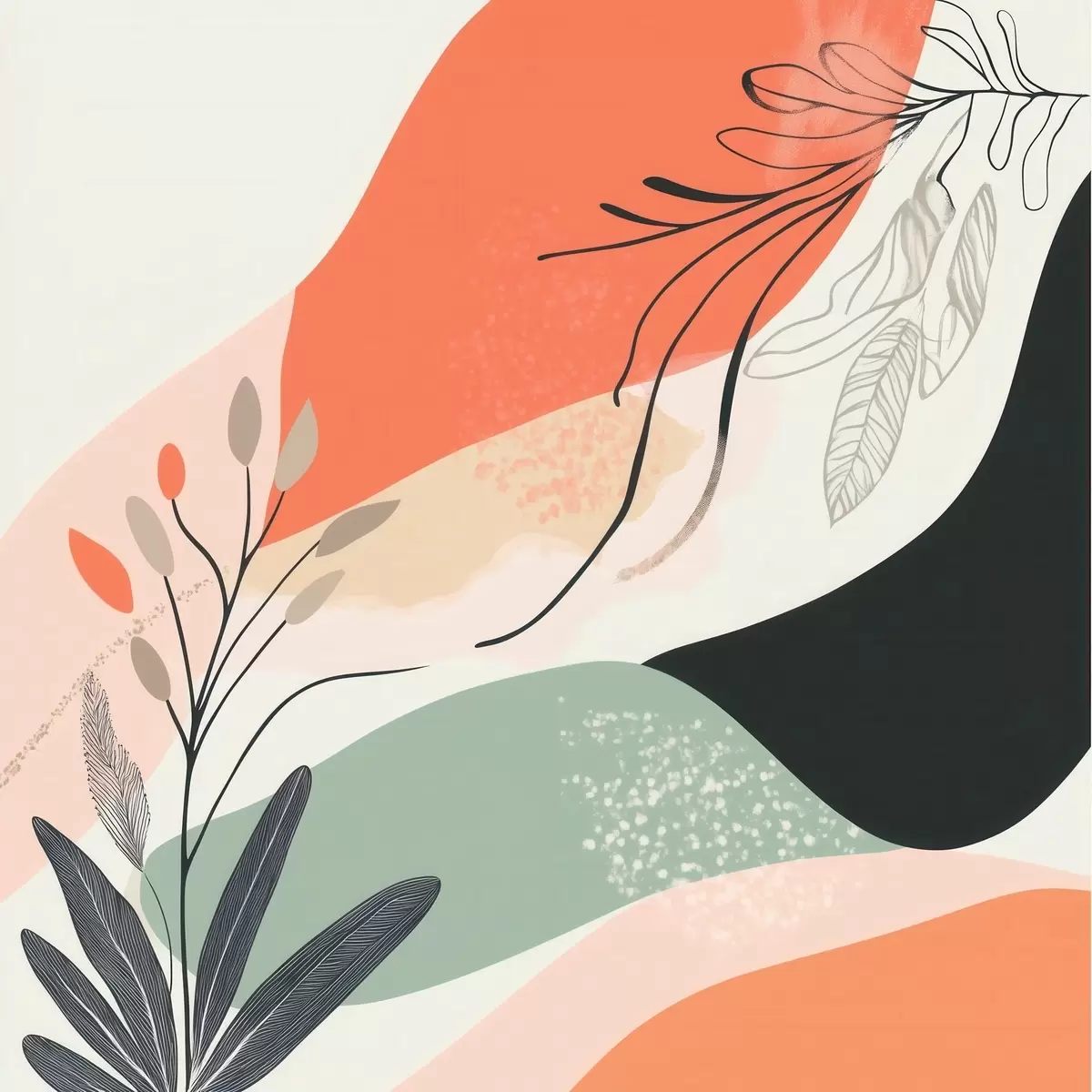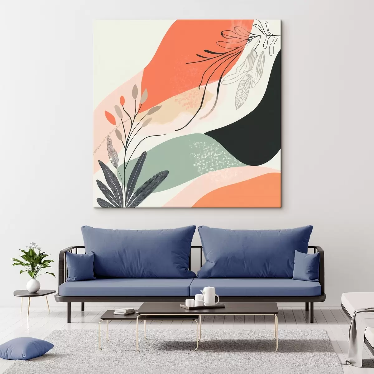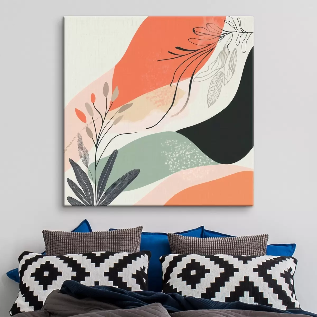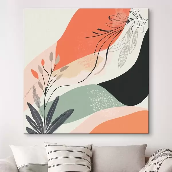 Vászonkép Stilizált növényi motívumok akvarellfoltokból álló háttér előtt Nr s48839