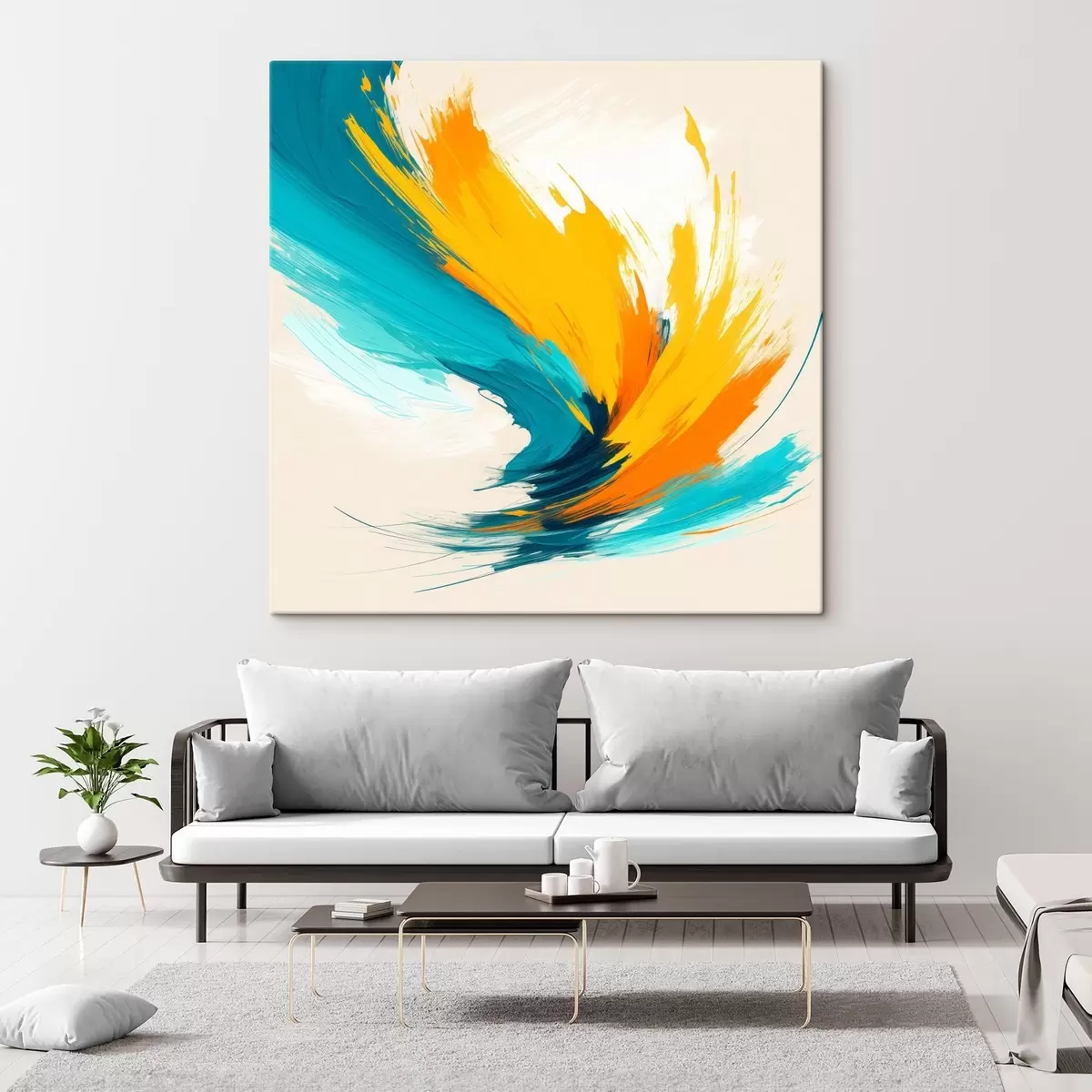 Vászonkép Sárga és kék árnyalatokból álló, lendületes örvény modern festészeti stílusban Nr s48856