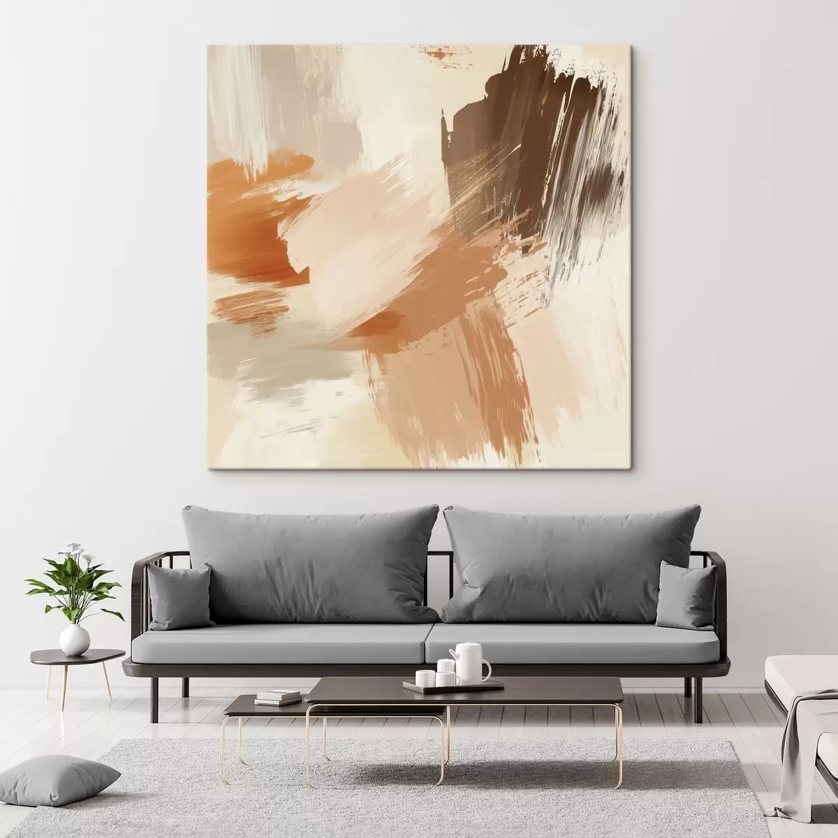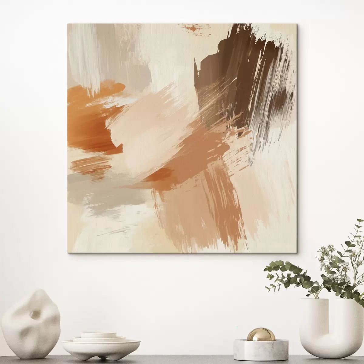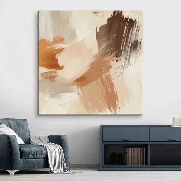 Vászonkép Absztrakt ecsetvonások utánzása homokszínű és barna árnyalatokban Nr s48857