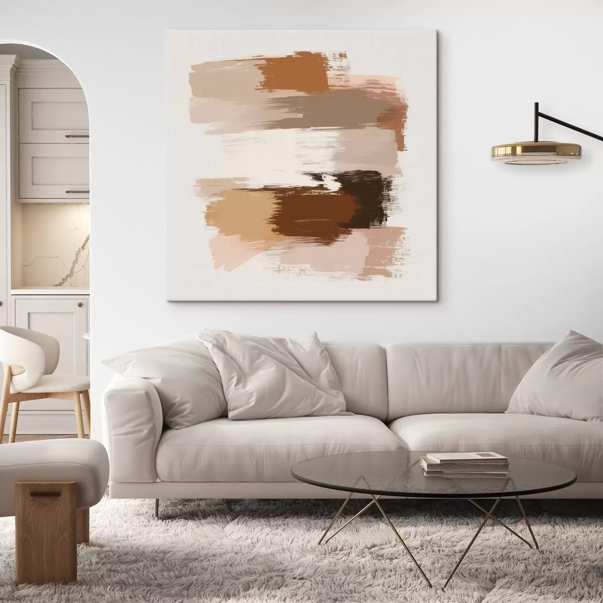Vászonkép Minimalista kompozíció vízszintes ecsetvonásokkal, kávé- és terrakotta árnyalatokban Nr s48858