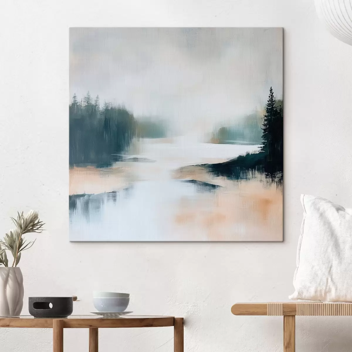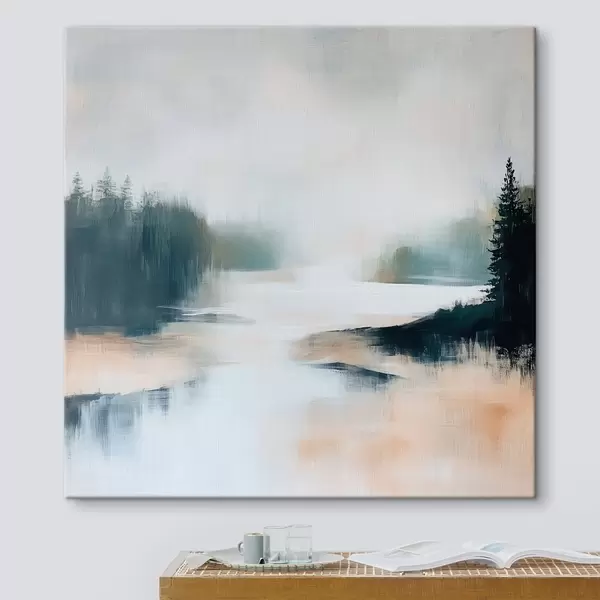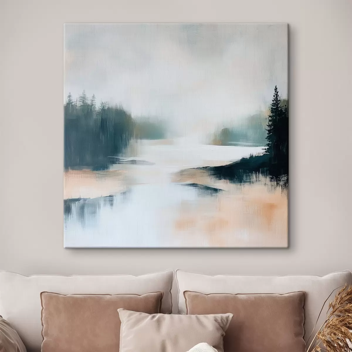 Vászonkép Rózsaszín és kék árnyalatokban megfestett, absztrakt erdei tájkép kortárs festészeti stílusban Nr s48862