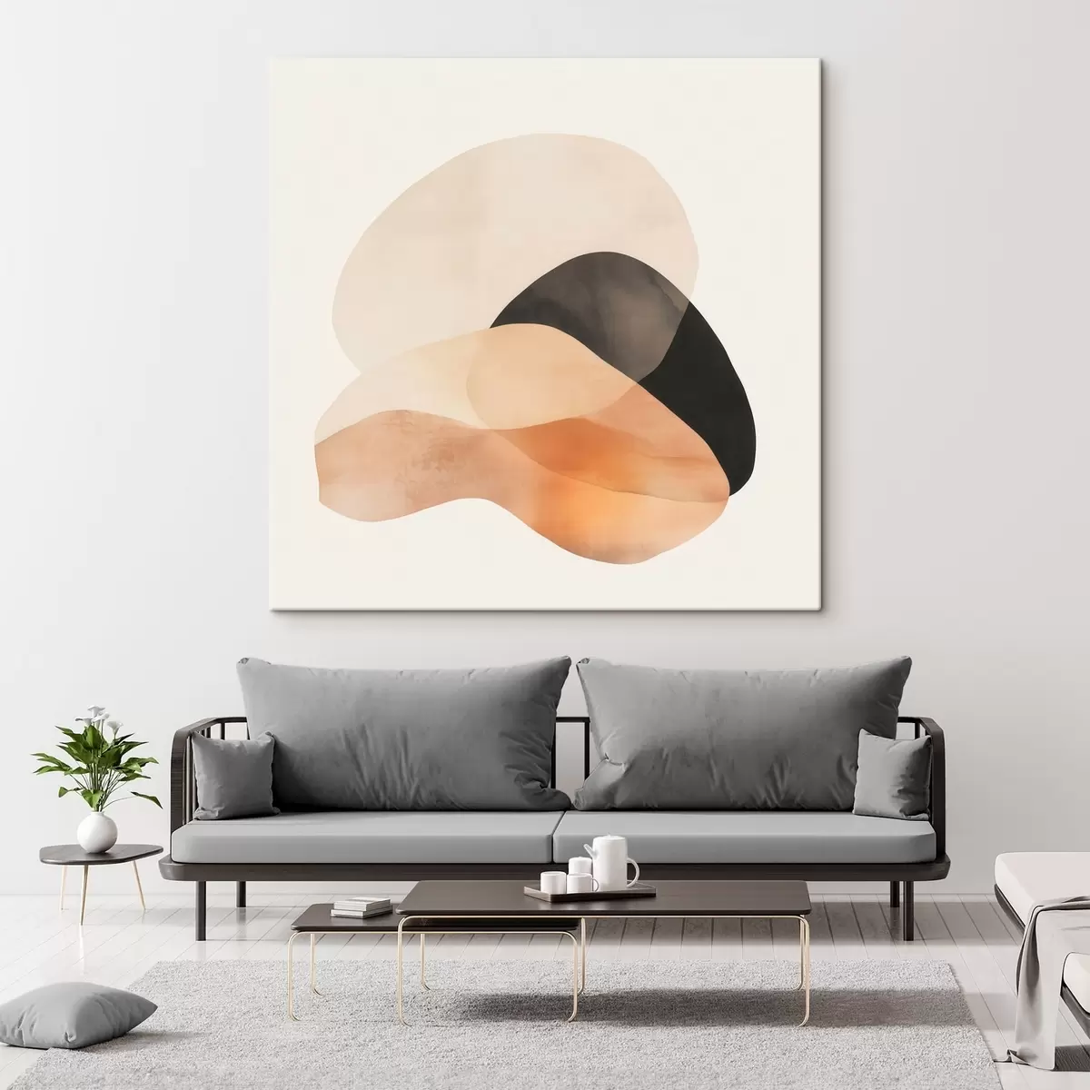 Vászonkép Absztrakt formák bézs-barack színvilágban, sötét díszítésekkel, minimalista stílusban Nr s48863