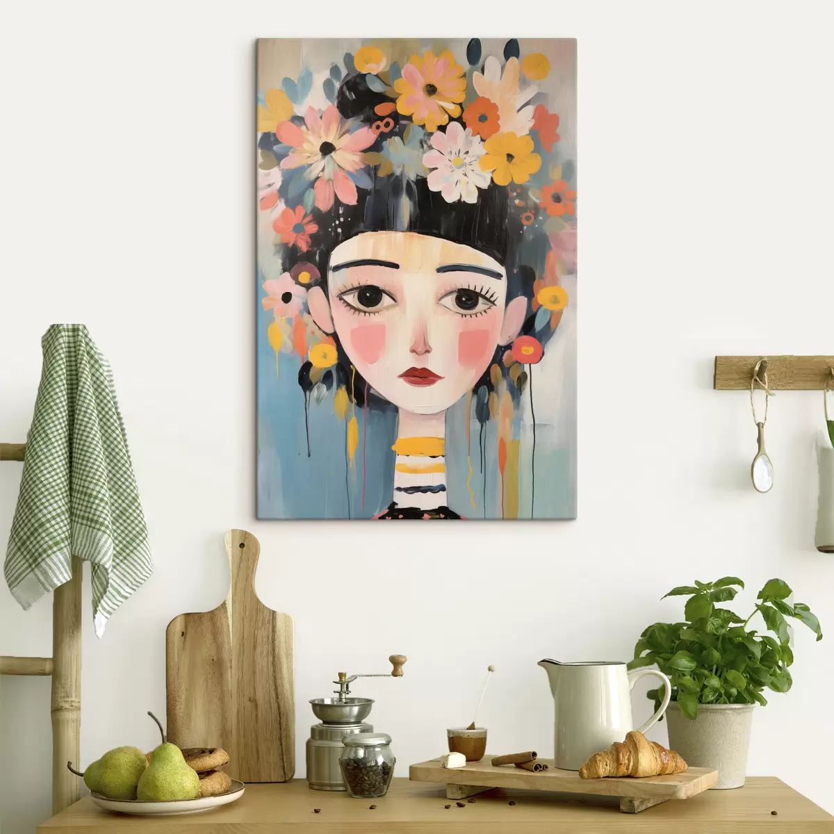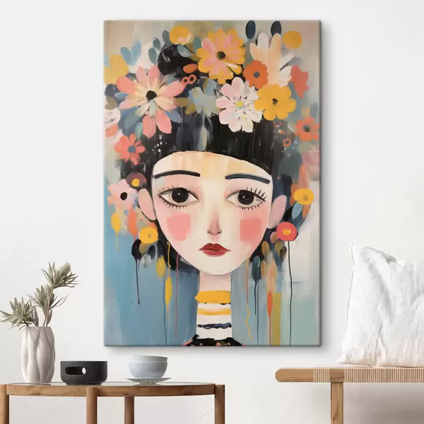 Vászonkép Portré egy nőről, virágokkal a hajában, absztrakt stílusban Nr s48935