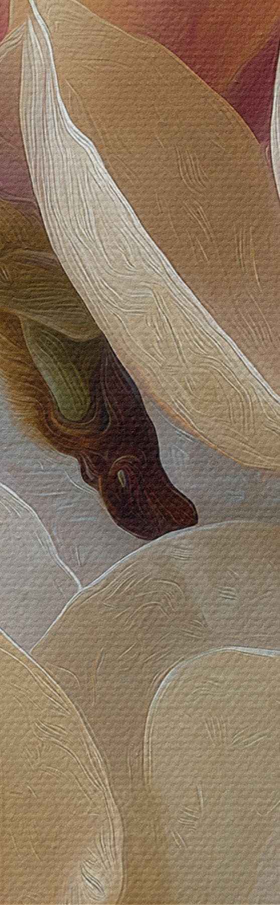 Ahhoz, hogy a vásznat a feszítőrúdra feszítsük anélkül, hogy a kép megsérülne, tükrözött képet használunk.