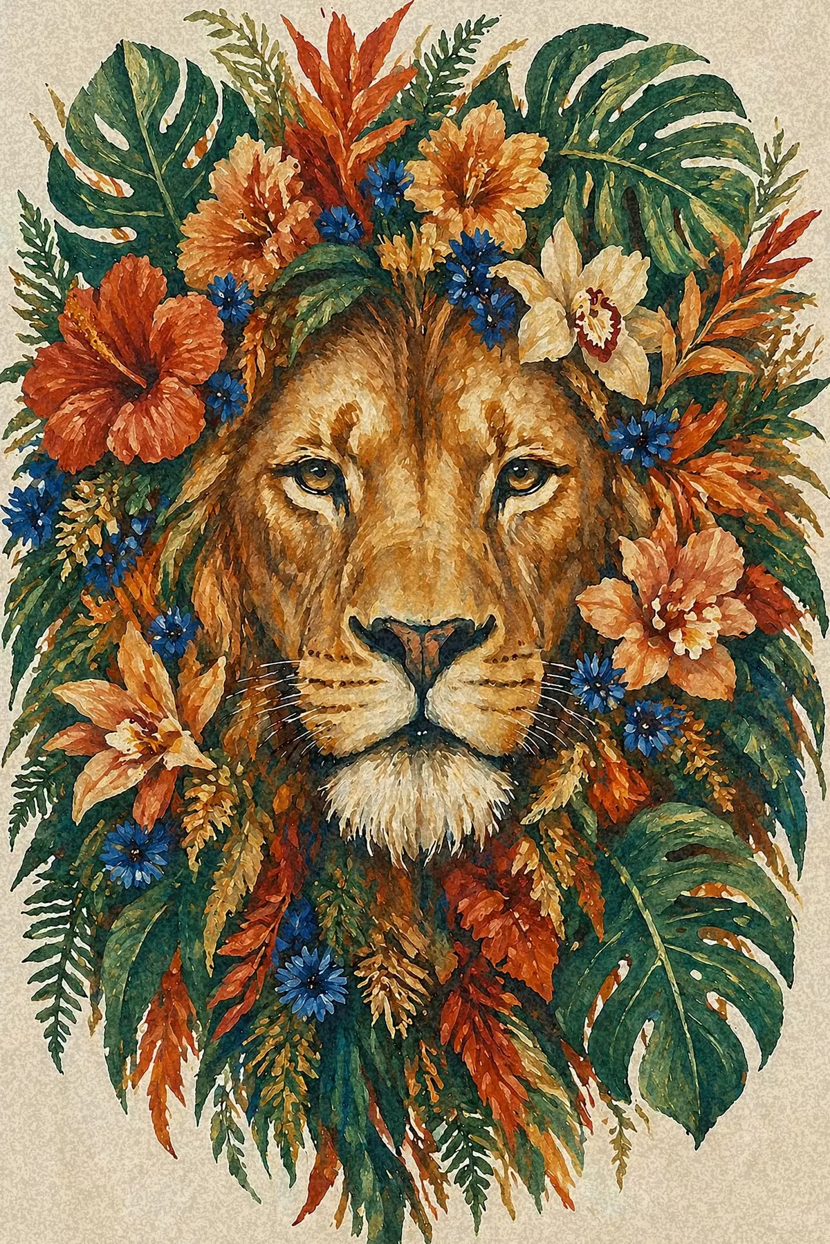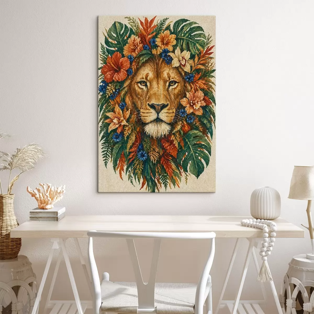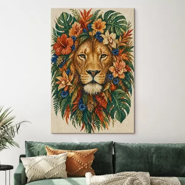 Vászonkép Oroszlán virágokkal Nr s49037
